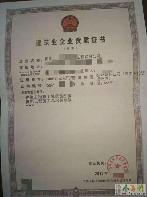 5、(郑州)房建三级、机电三级、环保三级、地基三级、钢构三级、装饰二级、防水二级、幕墙二级 带安许小百姓网www.xbaixing.com。