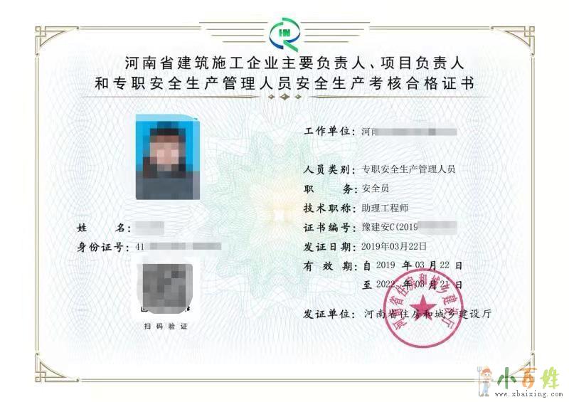三类人员证书有A类、B类,专职安全员C证,它是由省住房和城乡建设厅核发,是施工企业在招投标、办理安全生产许可证必备来自www.xbaixing.com。根据相关规定,人员需经过安全生产知识考核,合格后方可持证上岗小_百_姓_网。