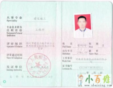 书由国家权威人保部颁发,是评定在助理工程师岗位的级别。也小~百~姓~网